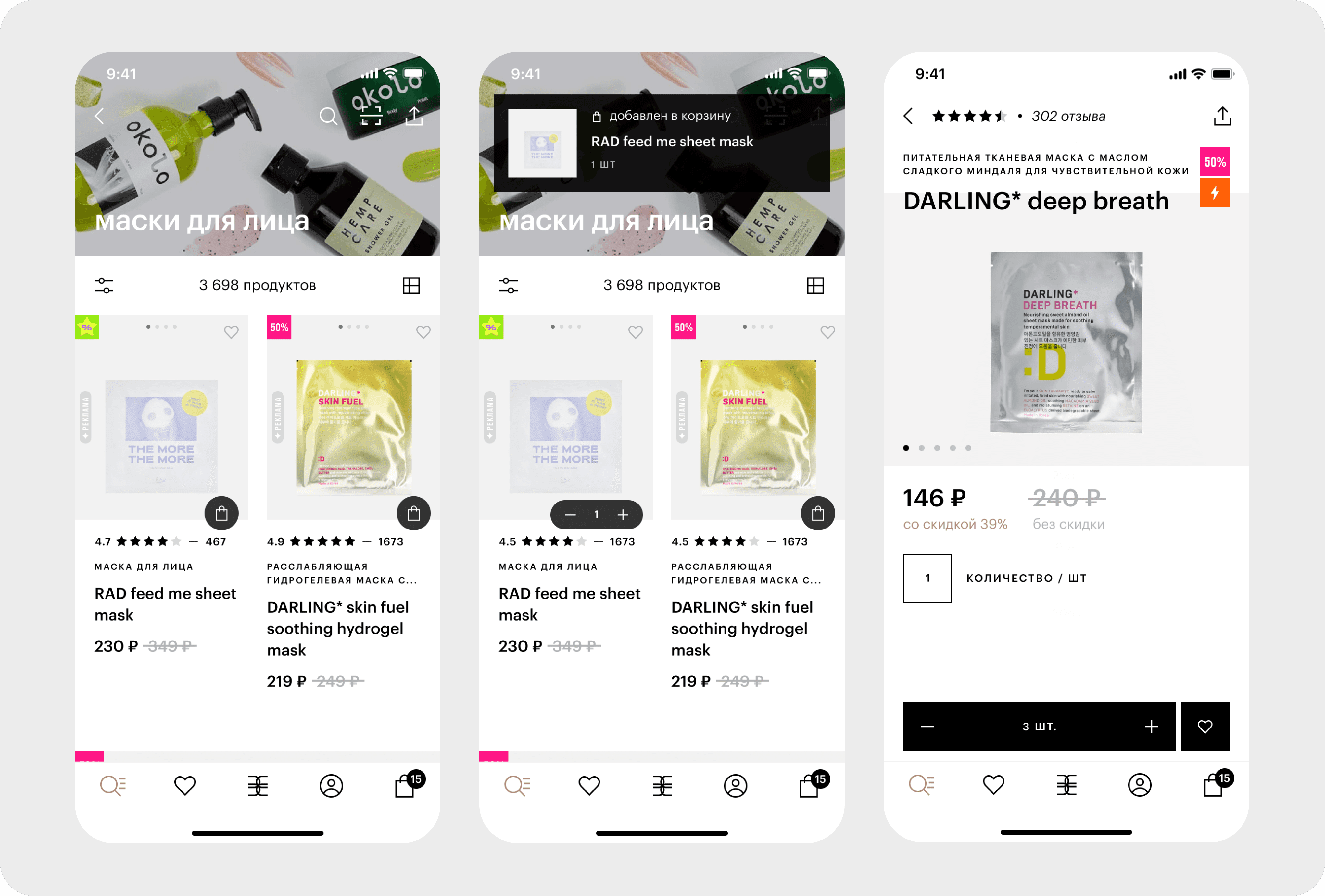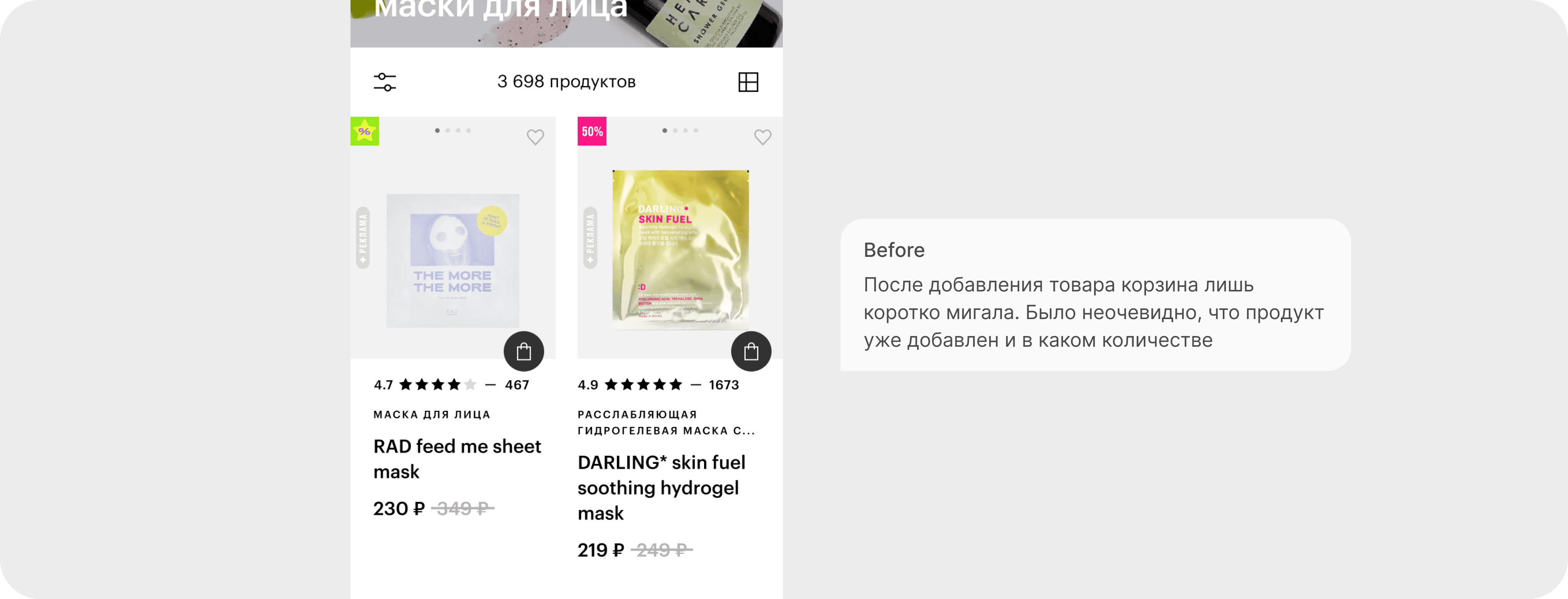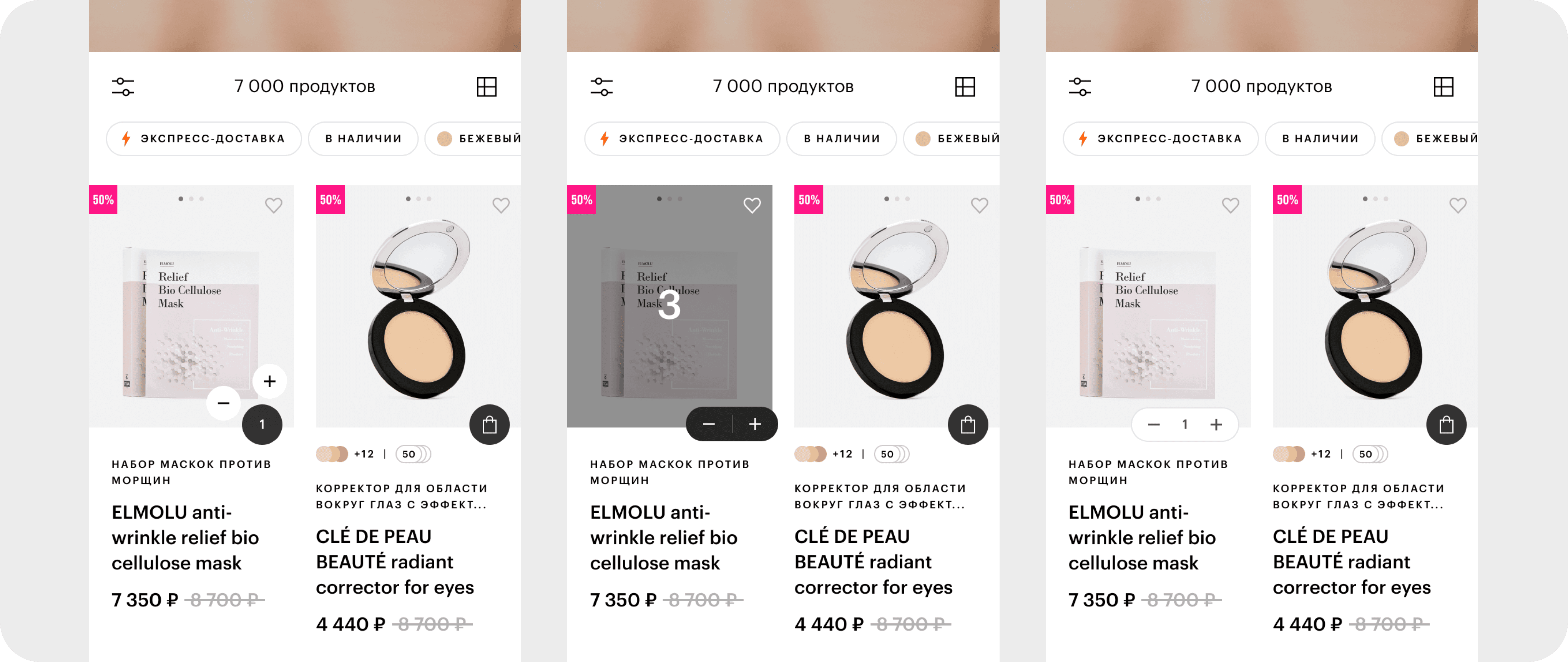 Во многих бьюти-категориях пользователи сразу покупают несколько штук — маски, БАДы, продукты гигиены. И именно в этих сценариях отсутствие возможности выбрать количество превращается